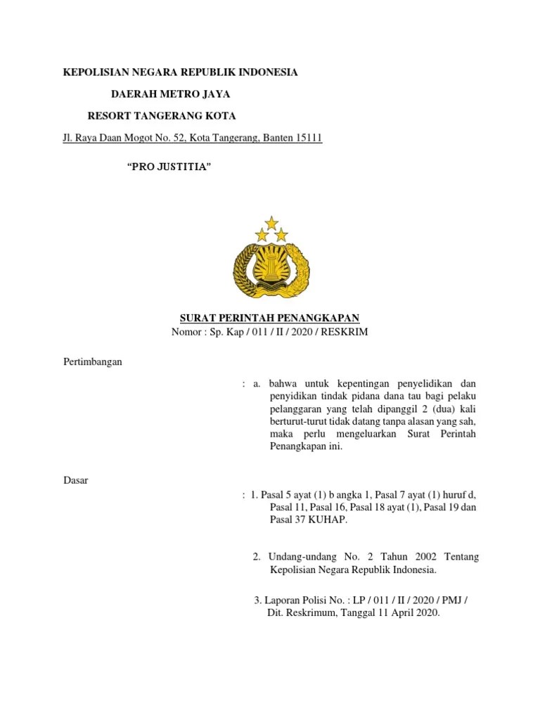 Contoh Surat Penangkapan Polisi Pdf : Dit Reskrimum Polda Metro Jaya Telah Keluarkan Surat Penangkapan Terhadap Tedja Widjaja Media Transparancy